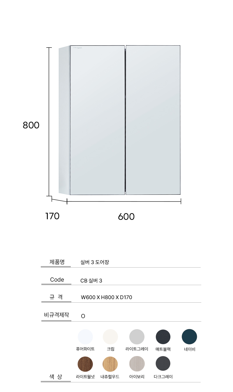 W 600 X H 800 X D 170